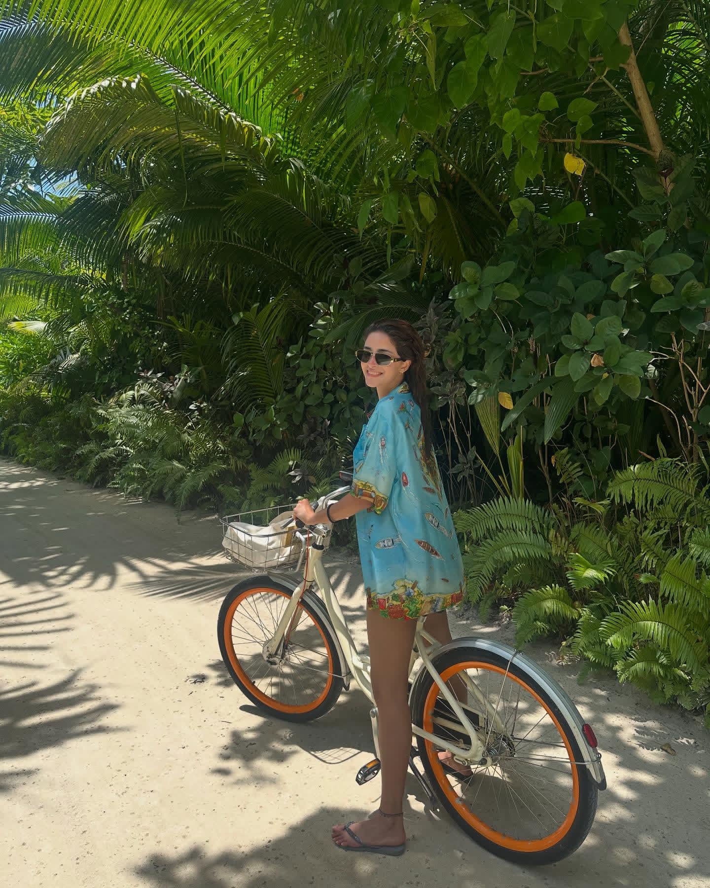 This image captures her in a raw, unfiltered moment, basking in the tropical paradise and embracing the serenity of the ocean. It’s not just about the outfit; it’s about the way she carries it—with confidence, ease, and an undeniable star quality.