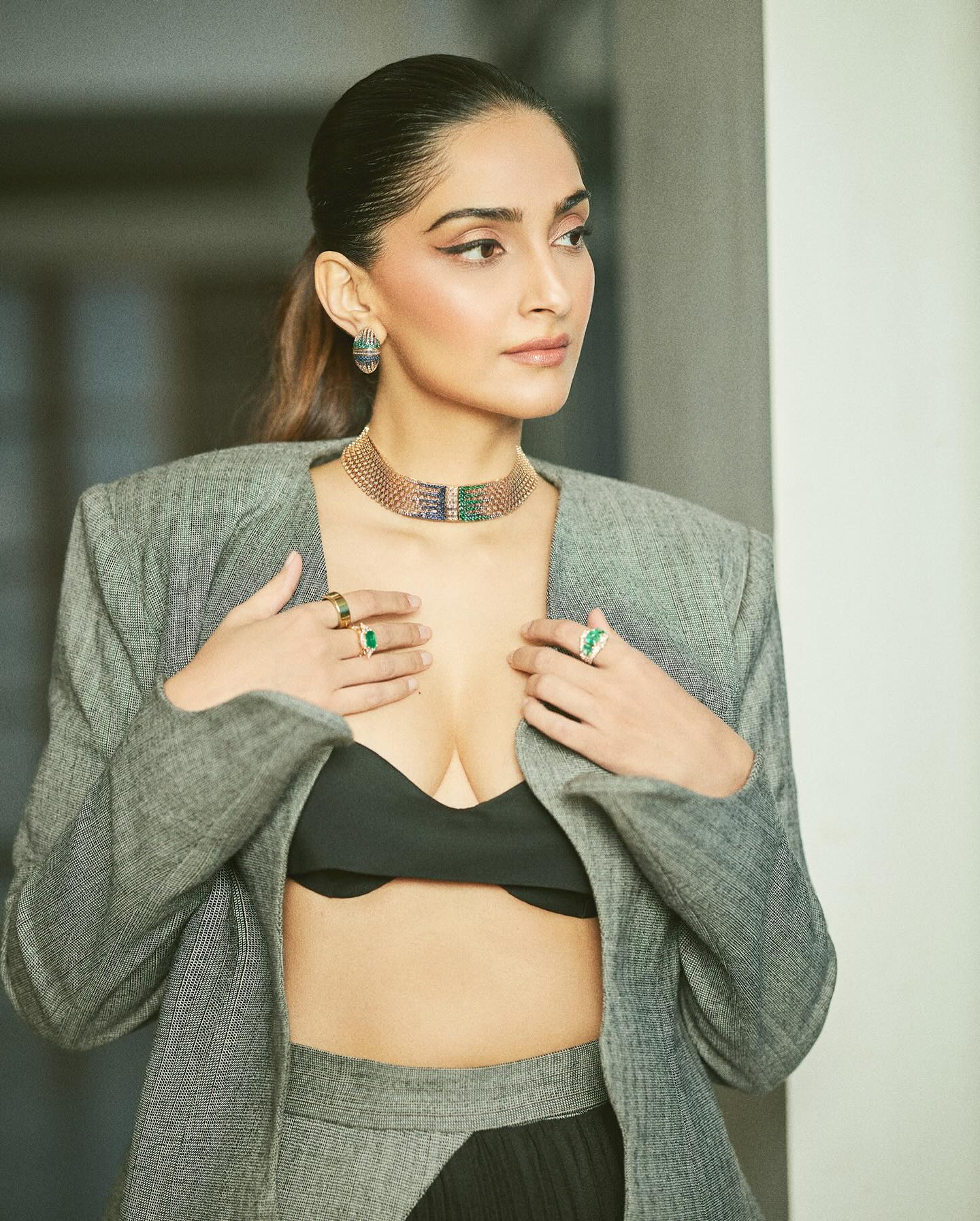Sonam Kapoor Turns Heat CEO in Bold Blazer & Bra Look with deep cleavage – A Masterclass in Luxe Temptation