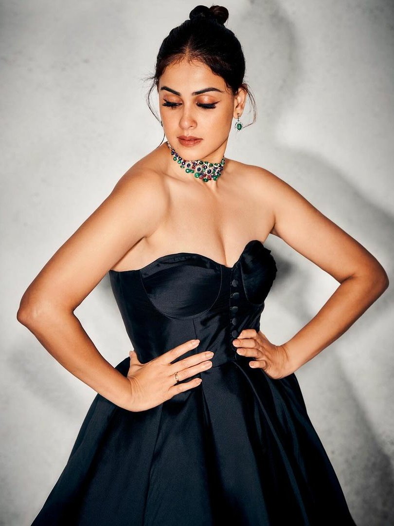 Meenakshi Chaudhary sizzles in strapless white mini-dress and sheer stockings — flaunts her long elegant legs in style