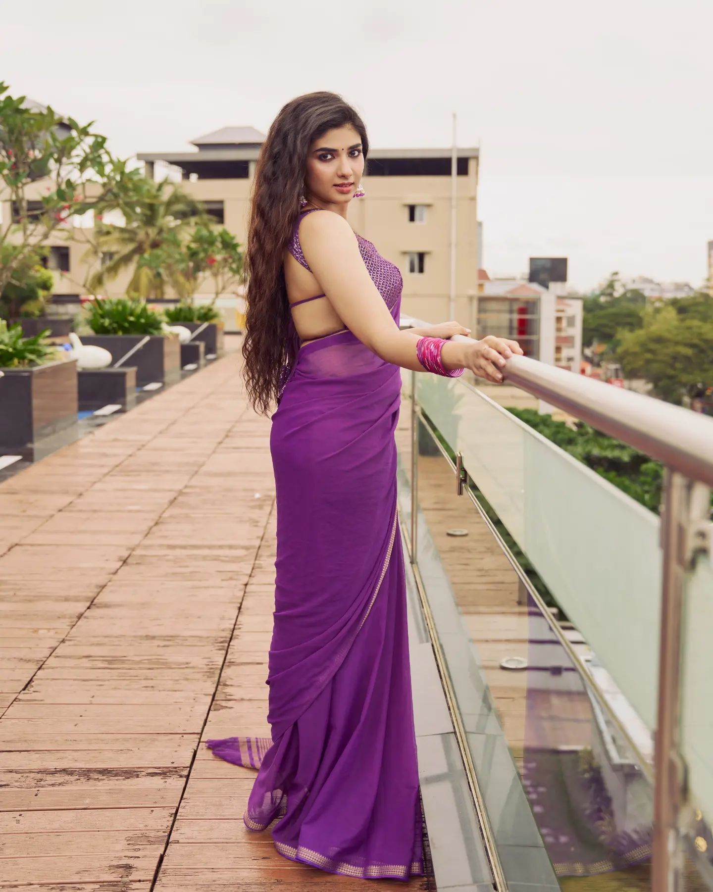 Tanya Hope Tempts in Purple Saree with her hot navel & backless