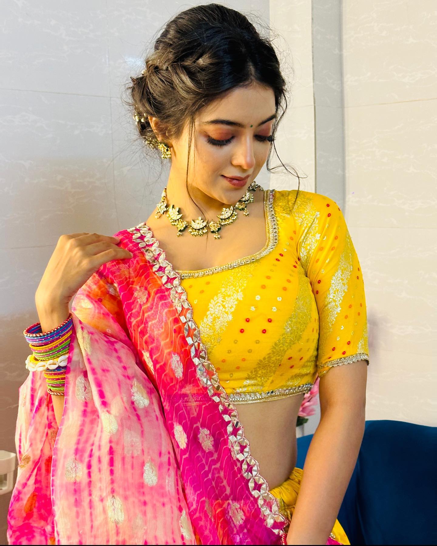 Ruhani Sharma’s halter-neck yellow bikini redefines hot — pure allure, bold oomph, and deep-cleavage magic, tempting navel